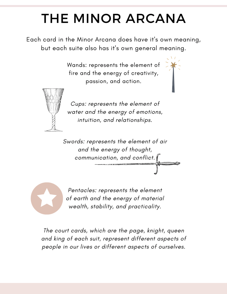The Minor Arcana reflects everyday life and is divided into four suits: